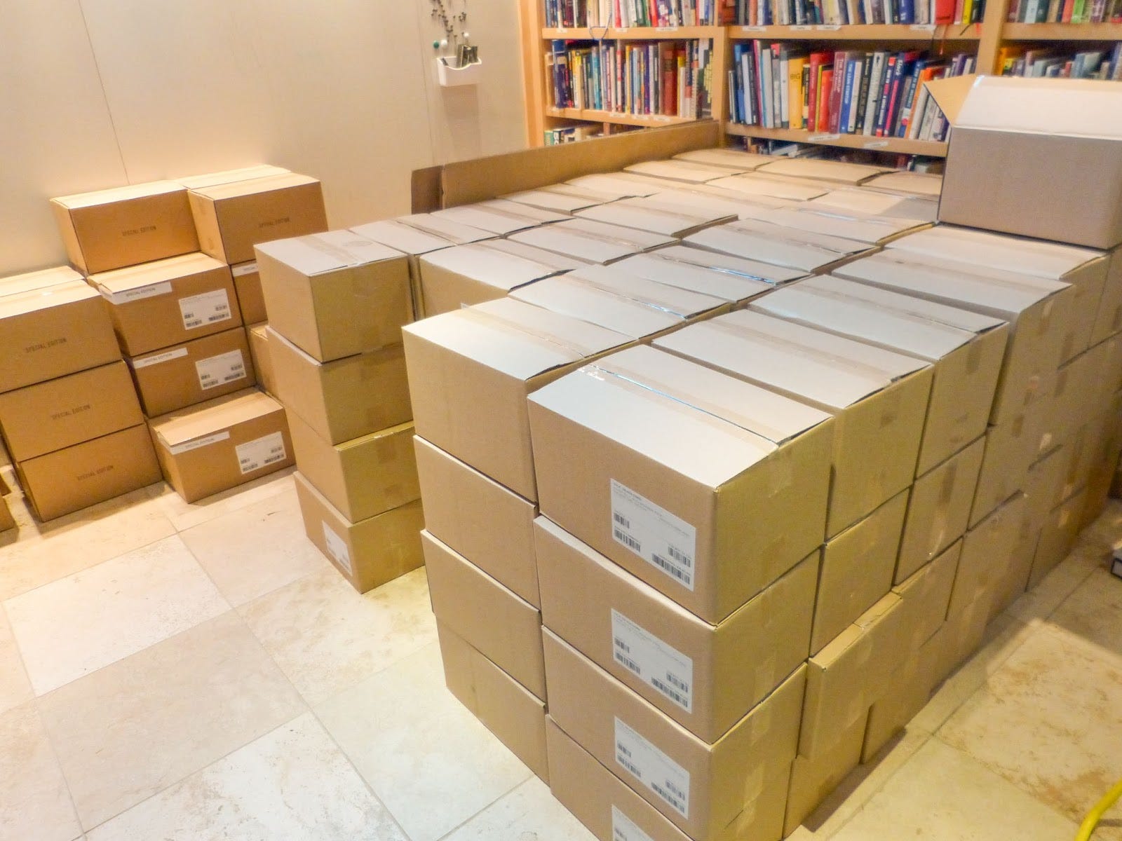 The disadvantages of having your book printed at a printer are #1: You have to house and store them somewhere. Either you have an available basement or garage, or you rent a place, or you hire a dropshipper, or you pay for a distribution giant like Ingram or Amazon to handle it for you. The full run of a book can take up more room than you might think when they are packaged up for shipping. My Vanishing Asia book set, financed on Kickstarter, printed in Turkey, filled up 4 shipping containers, each 40 feet long! That is a LOT of books to store.