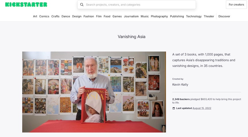 These days backers expect a video — and other marketing bits – selling the book. Pre-sales for a crowdfunding campaign have become very sophisticated and require a lot of preparation. The Kickstarter for my Asia photobook was relatively simple and crude.