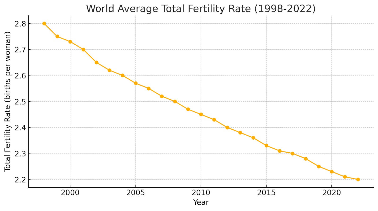 The key metric of fertility is the replacement level. If the total fertility rate is below replacement, then over time, the population decreases, because the current humans don’t replace themselves in numbers. Right now in 2025 every developed country except one (Israel) is below replacement and getting lower each year. Some countries in East Asia are so far below replacement that they are already losing population. Nearly every other country in the world is following this pattern of rapidly modernizing, reducing their birth rate in a one-way direction downward. Not a single country anywhere has been able to raise their birth rate above replacement once it dips below that threshold. It’s like a black hole.